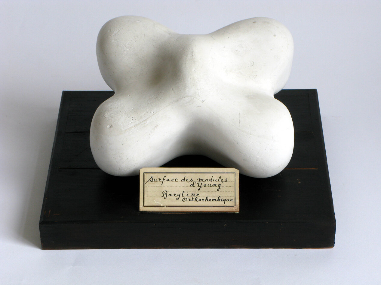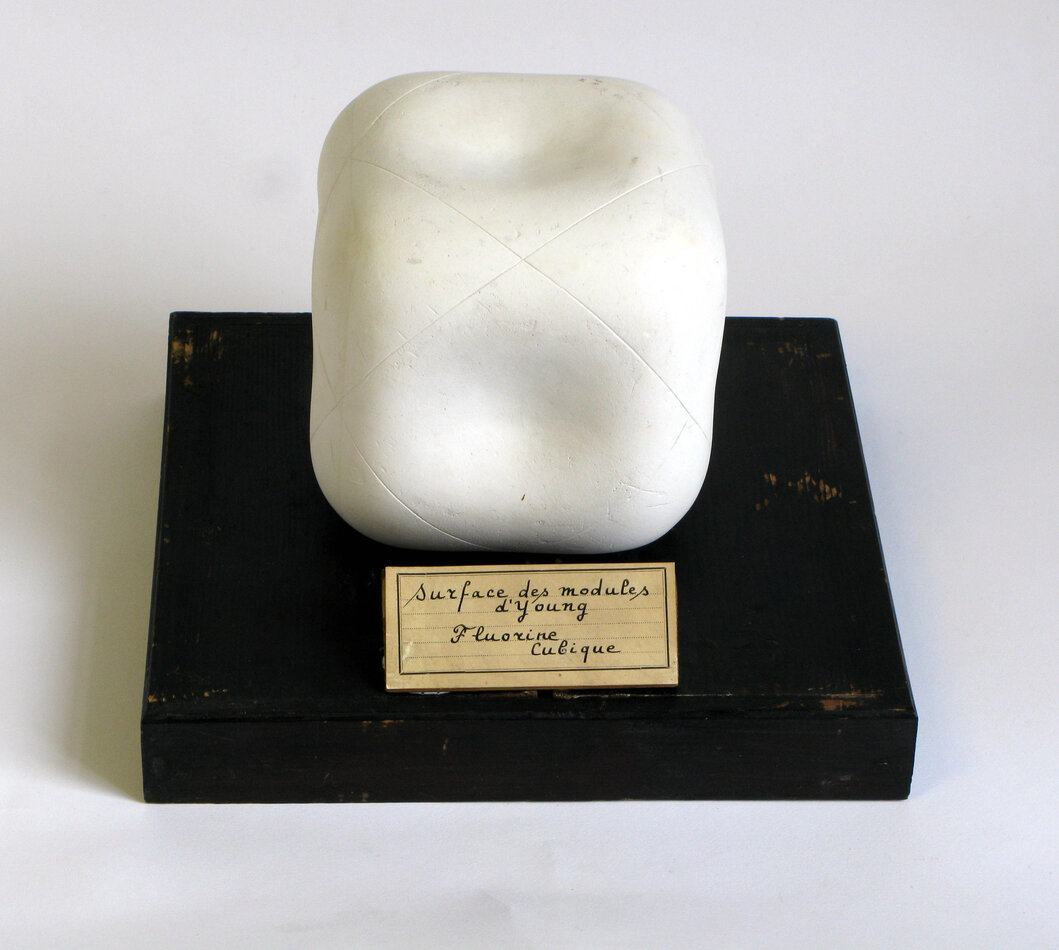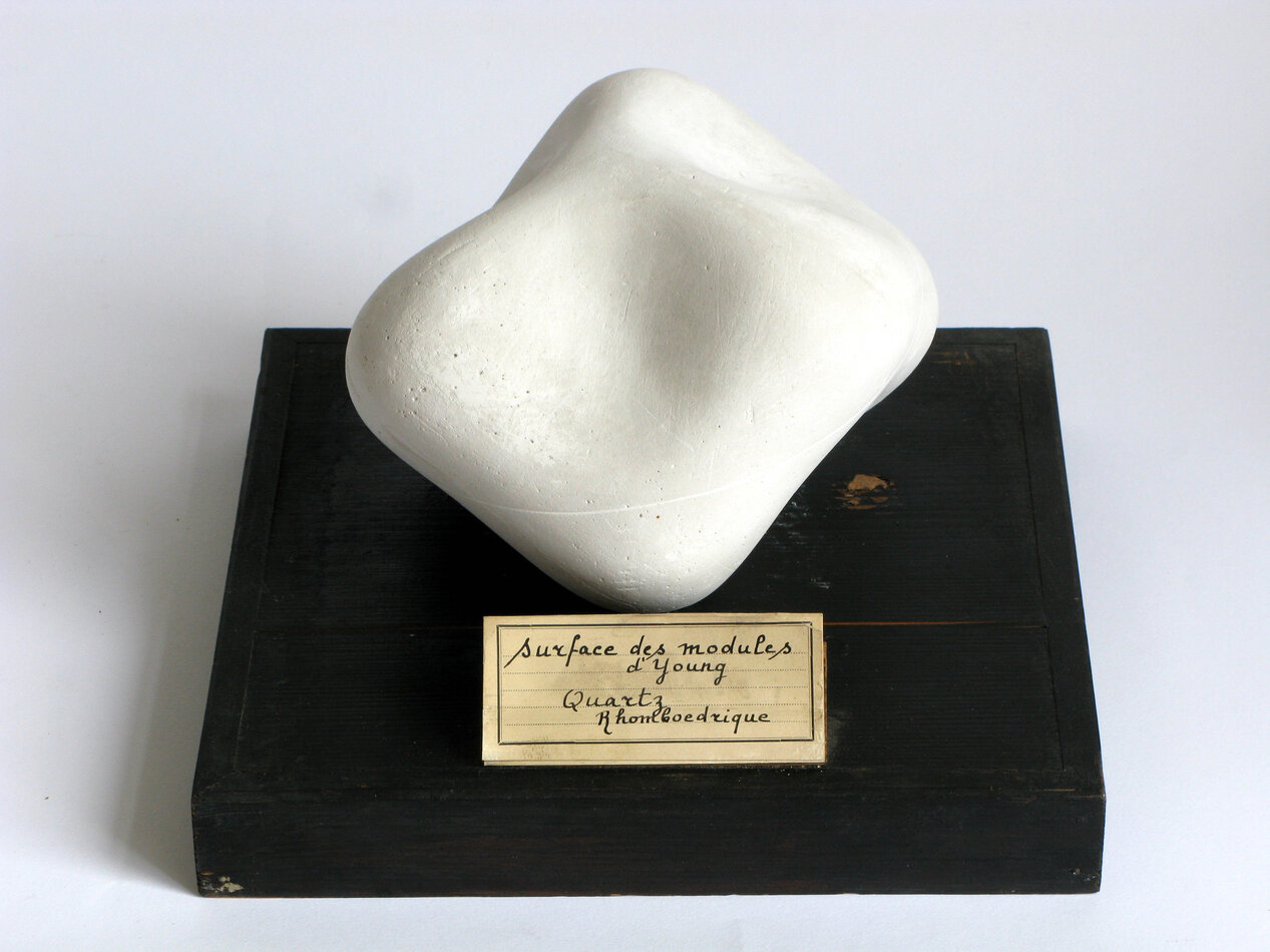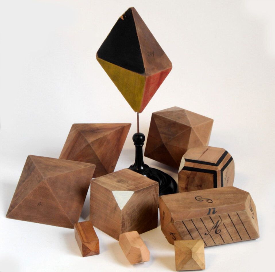 Une petite suite de 17 modèles en verre et carton, sur 31 à l’origine, montés sur socle en bois caractérisant des systèmes cristallins est conservée.