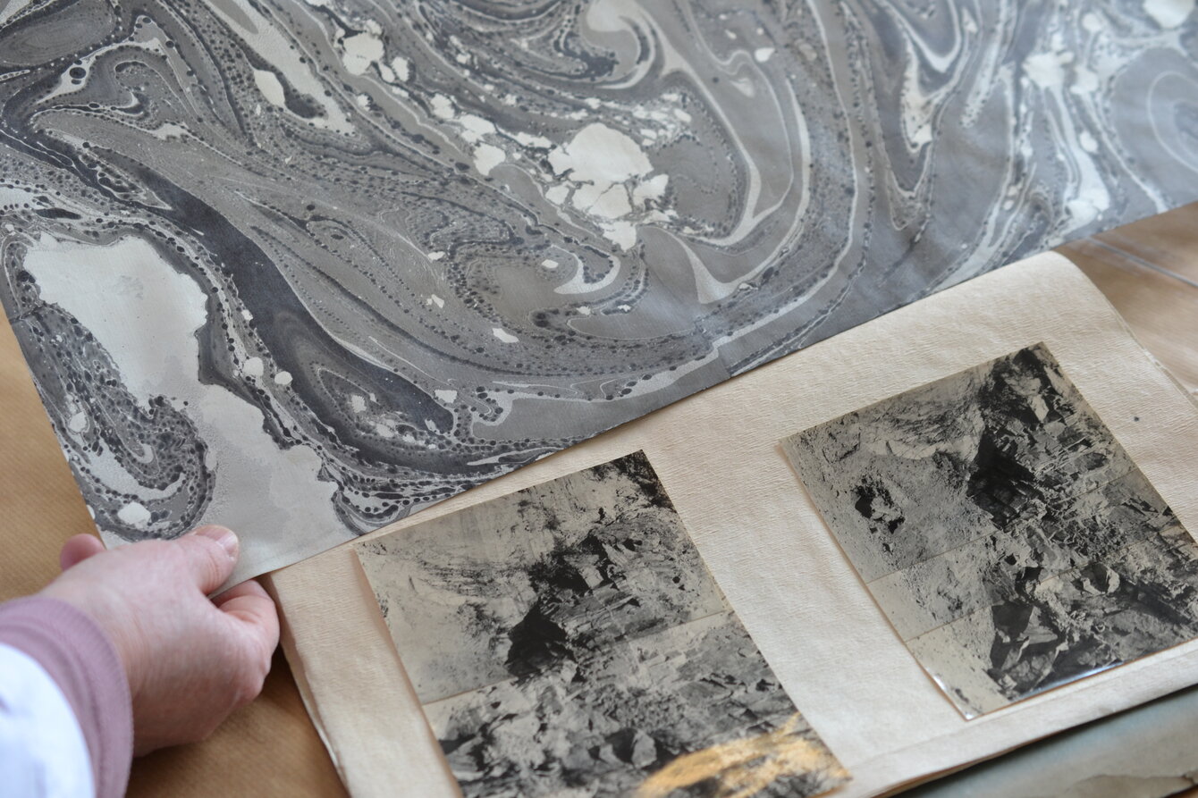 En coulisses / Choix des papiers - tissus - cuirs pour la restauration d'ouvrages du musée Préparation de l'exposition temporaire
