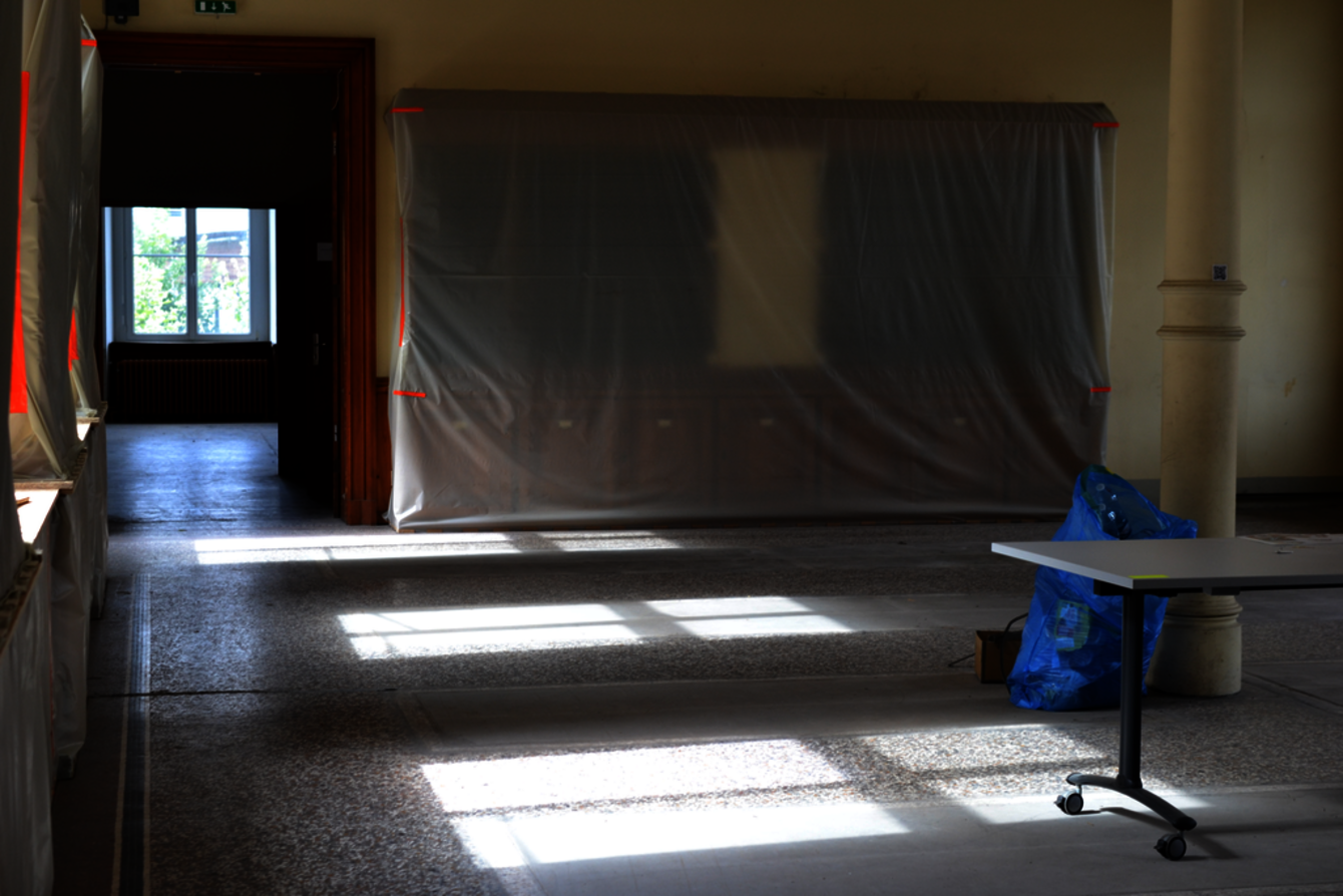 La libération de tous les espaces attachés au musée de minéralogie (salles de stockage de matériel, réserves, collections, salles musées, bureaux, laboratoires...) a nécessité de nombreux mois de travail afin de mener à bien le déplacement des collections et mobiliers dans les meilleures conditions possibles, le tout dans un délai très court ( voir la lettre de l'EOST d'octobre 2024, pages 15-16).