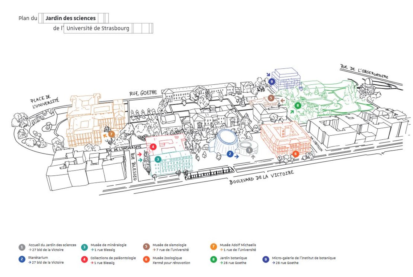 Le musée de minéralogie (3) est situé dans la Neustadt, au cœur du campus historique de l'Université de Strasbourg. Véritable quartier culturel, le Jardin des sciences de l’Université de Strasbourg vous invite à découvrir également le Planétarium, le musée de sismologie, les collections de paléontologie, Adolf Michaelis, le Jardin botanique. Retrouvez l'ensemble de leur programmation sur le site du Jardin des sciences.